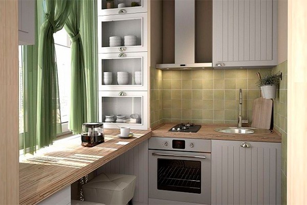 Неверным является и мировоззрение, что брать необходимо гарнитур уменьшенных размеров, это не так! Принципиально как будет расставлена мебель по помещению, потому приобрести можно и полноразмерный гарнитур. Компактная кухня по способности должна быть выражена в светлых тонах, потому что это зрительно расширит площадь. Естественно, допускается внедрение контрастов, но светлые тона должны превалировать.